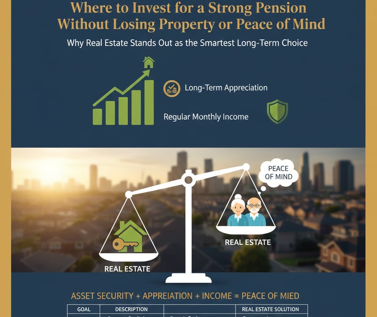Among all investment options available today, real estate stands out as one of the most reliable ways to build a pension, because it provides asset security, long-term appreciation, and regular monthly income, without forcing you to sacrifice ownership or mental peace.