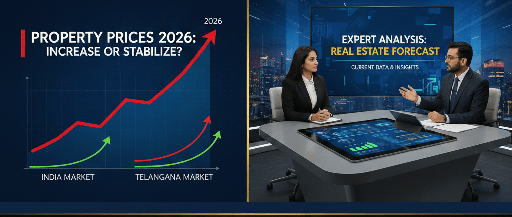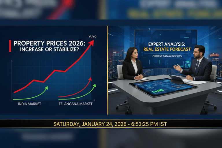 As we move deeper into 2026, one question dominates the minds of homebuyers, investors, and real estate developers alike: Will property prices continue to rise — or will they finally stabilize? The answer isn’t simple, but current data and expert insights paint a clear picture of where the Indian and Telangana markets are heading.